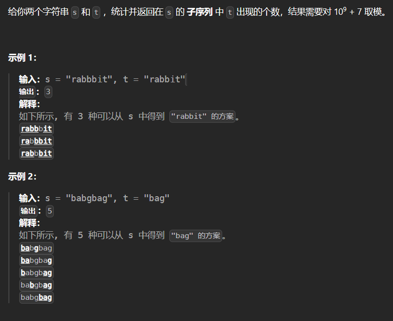 5.8* 115-不同的子序列 115